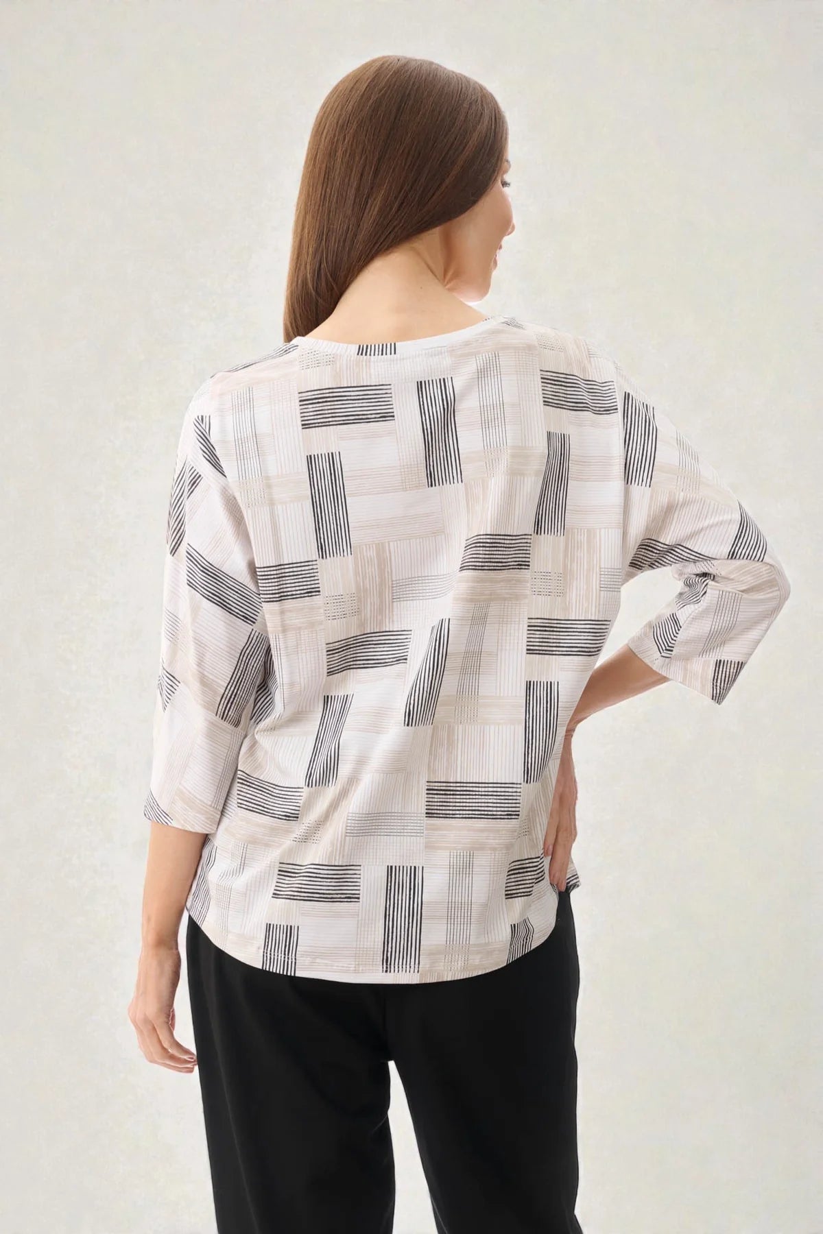 This boat neck top features an all-over print and relaxed sleeves for a casual, comfortable fit. Crafted with a soft, stretchy fabric, it’s ideal for effortless everyday wear.
