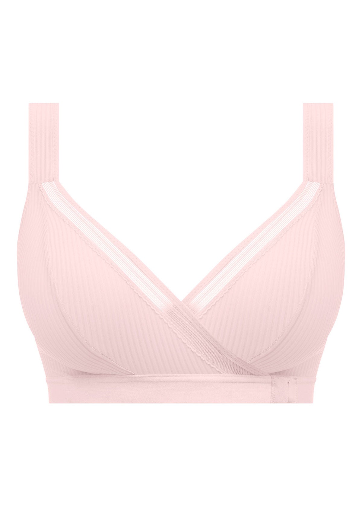 Discover complete comfort with Fusion's all-new Leisure Bra in a Blush pink hue. Crafted from super soft striped jacquard fabric that feels great against the skin. This non-wired style features a crossover design that fastens at the front for ease of wear, complete with an elasticated trim at the neckline.