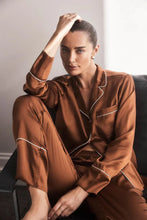 • Load image into Gallery viewer, Titiana Brown Satin Long PJ
