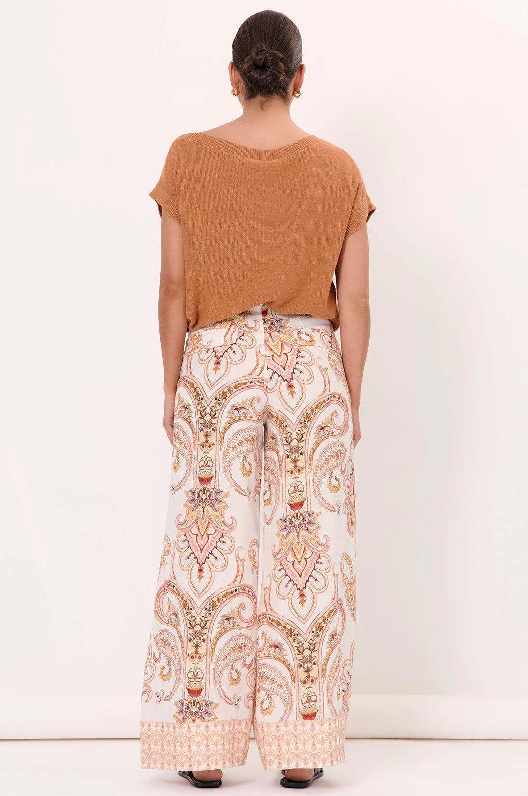 The Avalon Wide Leg Linen Pant is crafted from 100% linen in an exclusive print. Cut in a wide-leg silhouette, it features a zip fly with button closure, belt loops, and front patch pockets. Finished with a contrast hem detail.
