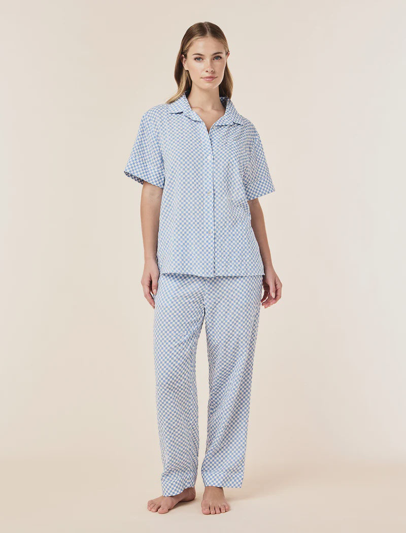 A soft PJ set made from breathable a cotton Lenzing™ Ecovero™ Viscose in a chic French girl check print.