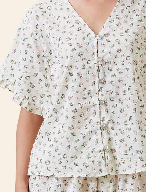 Adding to our beloved swiss dot range - introducing the Swiss Dot Frill Boxer PJ Set. These pure cotton short-sleeved, button-up tops and boxer shorts are a staple set to have when it comes to beauty and comfort. The frill edges on both top and bottoms add to their charm and make them oh-so flattering!
