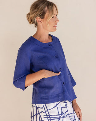 100% Linen 3/4 Sleeve Utility Jacket Denim