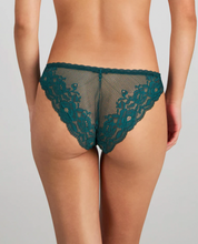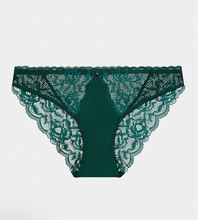 Bendon Delightfully So Bikini Brief in Rain Forest colour brings different textures together for a striking look. A combination of stretch floral lace and geometric fishnet lace with gunmetal hardware.
