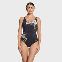 The Zoggs Freesia Adjustable Scoopback is designed to flatter and support! This swimsuit features a delicate floral placement print on a black base. With adjustable straps, full foam cups and power mesh tummy control, this one piece is perfect for those looking for quality, fit and support.